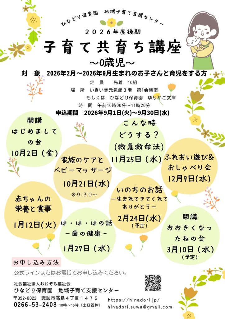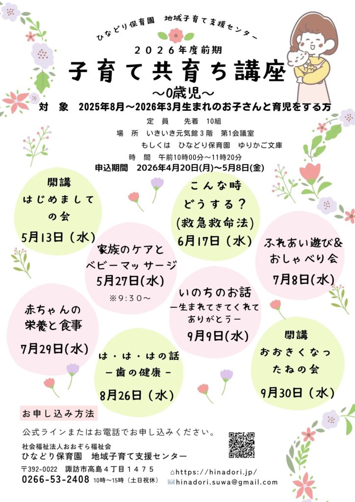 2026年度からは子育て共育ち講座と名称を変更し、お母さんはもちらん子育てにかかわる皆さん(お父さん・おじいちゃん・おばあちゃんなど…)の参加をお待ちしています♪