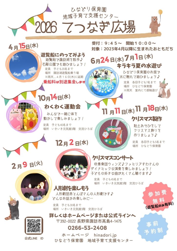 ひなどり保育園地域子育て支援センター公式ラインまたは電話にて事前予約をお願いします。