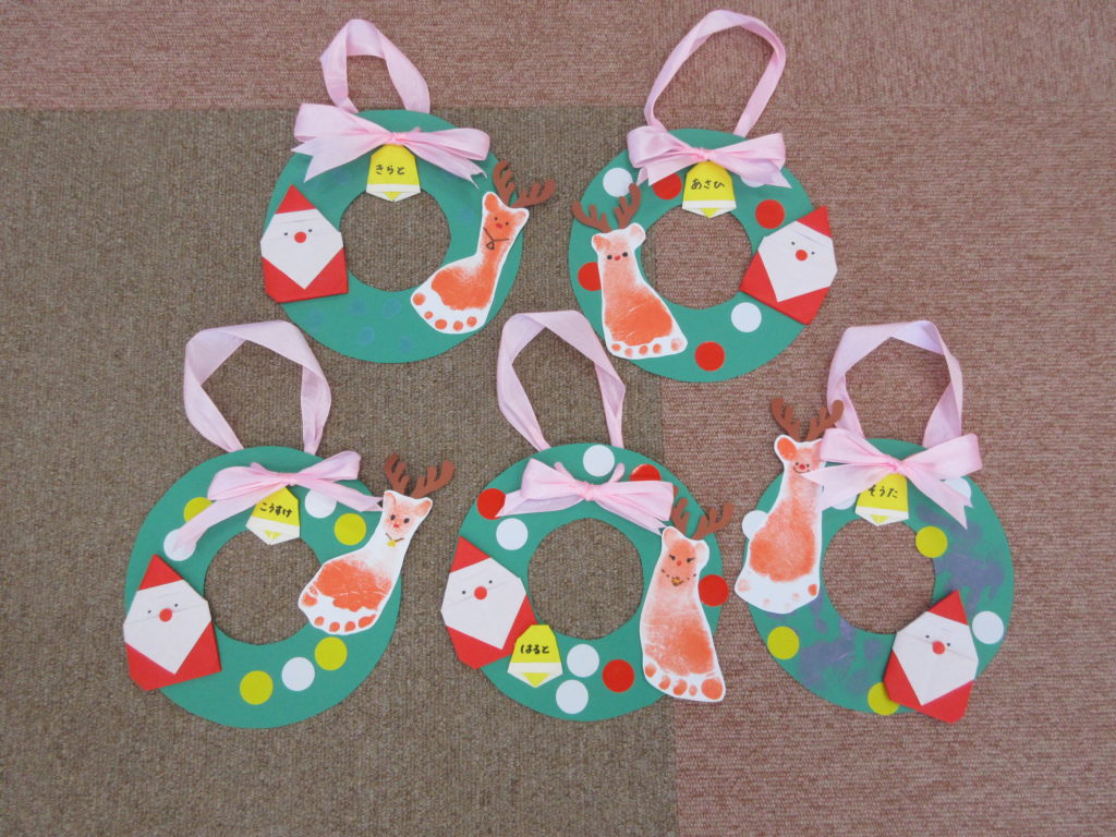またクリスマスが近いということでお子さんの足形を使った製作も♪