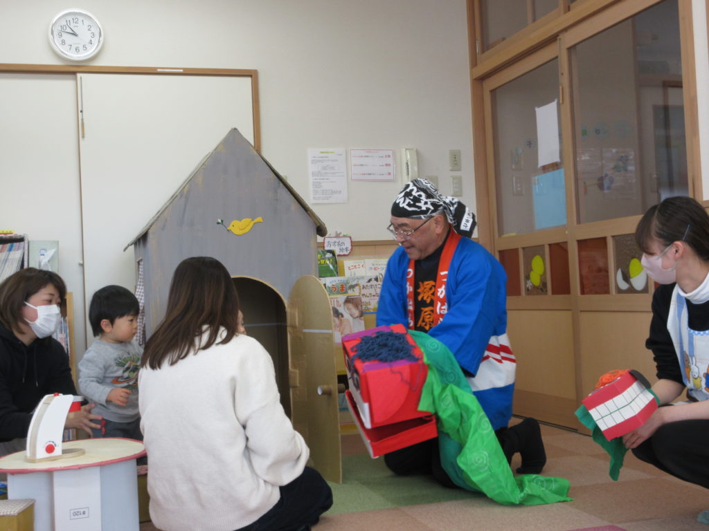 今月は園行事のどんど焼きがあり、のんびり広場にもお獅子が!!