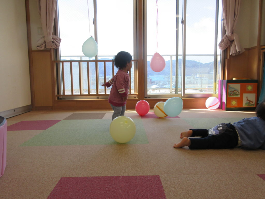 寒い時期でも室内で身体を動かして楽しんでもらえるよう風船で遊んだり